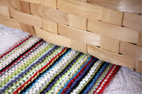Startet med å legge opp så mange masker som det var plass til på en rundpinne. Strikker videre fram og tilbake, med omgang i hver farge.